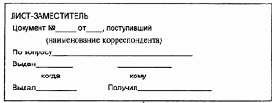 Карта-заместитель помещается на месте выданного дела. Разрешение на выдачу дел в другие организации может быть дано только руководителем учреждения, предприятия.
